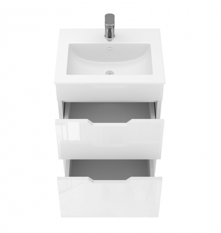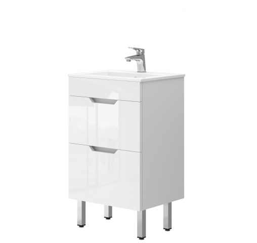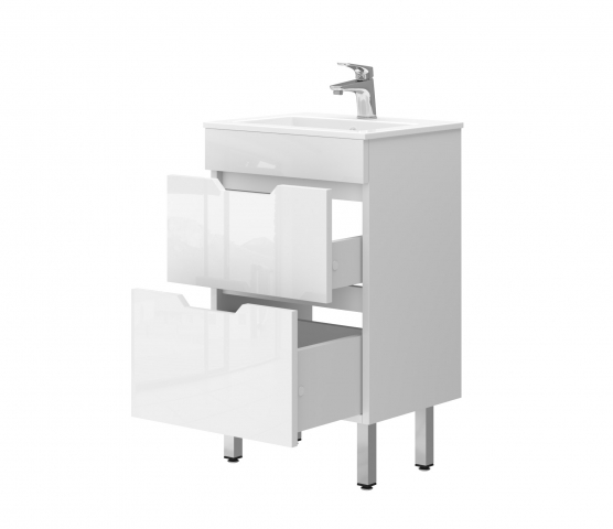 Тумба для ванной с умывальником St2-50 напольная Stefania Ювента – гармоничный союз стиля и рациональности, для обустройства ванной комнаты. Тумба поможет рационально использовать пространство под раковиной и улучшает эстетичный вид в целом. Тумба комплектуется керамическим умывальником «Practico-50», производитель «Sanovit», Турция и имеет два выдвижных ящика, которые позволяют удобно разложить всевозможные гели, кремы, полотенца и другие вещи, спрятать бытовую химию, скрывая их от окружающих. Вы можете укомплектовать тумбу сифоном Нептун Н0410, который идеально подходит для отвода воды в соответствии с особенностями конструкции тумбы. Тумба привлекает внимание белым глянцем; легким, воздушным дизайном; отсутствием ручек их функцию выполняют выфрезерованные на фасадах выемки; универсальностью - два варианта размещения: подвесной (имеет крепления к стене) и напольный (для установки на пол комплектуются 4 хромированными ножками); направляющими с функцией самодотягивания частичного выдвижения, производитель Hettich. Благодаря мебели Stefania Juventa Вы подберете то, что подчеркнет дизайн вашей ванной и будет отлично смотреться долгие годы.