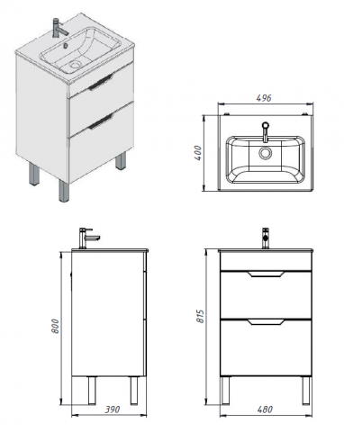 Описание Тумба для ванной с умывальником St2-50 напольная Stefania Ювента