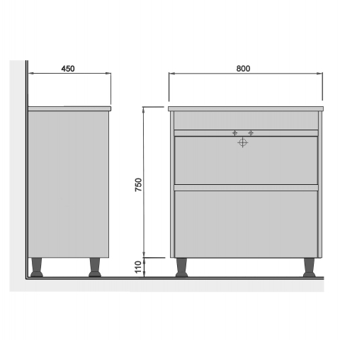Тумба для ванной со столешницей 80-U ST Prime Мойдодыр