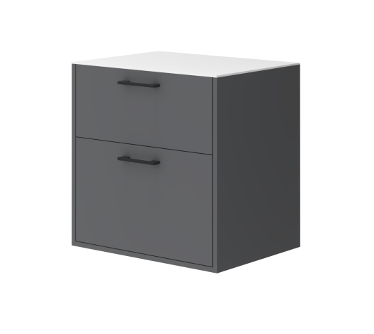 Тумба для ванной со столешницей HPL 60 Afina антрацит Ювента шедевр элегантности и современной роскоши, которая превратит Вашу ванную в истинное произведение искусства, погрузив Вас в мир утонченного стиля и комфорта, где каждая деталь продумана до мелочей. Тумба со столешницей из влагостойкого материала HPL толщиной 6 мм (без отверстия под умывальник, что подходит для любого накладного умывальника) и в своей конструкции имеет два ящика, которые изготовлены из ламинированного ДСП толщиной 16 мм и установлены на направляющие с функцией самодотягивания частичного выдвижения, Hafele. При этом верхний ящик имеет высоту 240 мм, а нижний ящик выше, 334 мм, что позволит вам хранить внутри него различную бытовую химию в высоких бутылках. Также в конструкции тумбы предусмотрен общепринятый и гармонизированный со всеми европейскими стандартами подвод и отвод воды. Комплект мебели "Afina" в антрацитовом цвете от "Ювента" — это произведение искусства, создающее неповторимую атмосферу роскоши и уюта в вашей ванной комнате. Позвольте себе наслаждаться каждым мгновением, проведенным в окружении изысканности и комфорта.