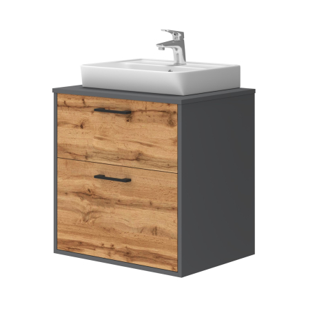 Купить тумбу для ванной со столешницей МДФ и умывальником Neon-45 60 Afina антрацит / дуб вотан Ювента в Украине, Киеве, Днепре