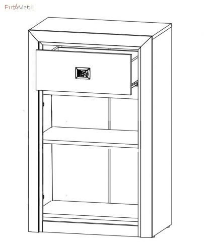 комод содержит один выдвижной ящик и одно закрытое отделение, где расположена одна полочка |