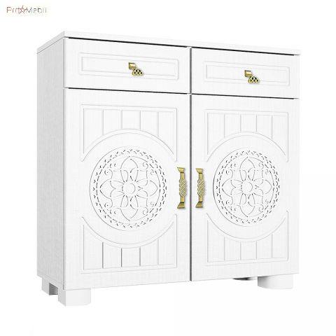 Тумба комбинированная МБ-5 Монблан Санти - это современный предмет мебели, идеально подходящий для хранения вещей в прихожей, а также в гостиной, спальни и даже детской комнате. Тумба состоит из двух выдвижных ящиков и двух распашных дверей, внутри которых скрывается одна полка. Корпус изготавливается из ламинированной ДСП толщиной 16 мм немецкого концерна «Kronospan», фасад – из МДФ с технологией нанесения объемного рисунка 3D. Торцы деталей оклеиваются ПВХ-кромкой фирмы Rehau. Мебель Moblan Santi выпускается в нежном цвете «белое дерево» со структурой дерева. Главной особенностью коллекции являются - рамочные фасады с изысканной фрезеровкой и с ажурными медальонами посредине, металлическая фурнитура, выполнена в стиле старинной ковки в золотистом цвете, элегантные ножки придающие легкости. Все элементы продуманные до мелочей позволяют формировать уникальный мебельный комплект, который идеально подойдет для Вашей прихожей.