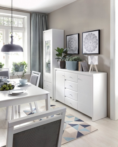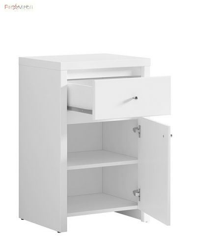 Белоснежная тумба KOM1D1SP Кристина ВМК (БРВ) с изысканным и элегантным скандинавским стилем для обустройства интерьера гостиной, спальни, детской, кабинета и прихожей в соответствии с вашими предпочтениями. Тумба содержит один выдвижной ящик и закрытое отделение с полкой внутри. Тумба привлекает внимание сочетанием простого и оригинального стиля; цветовым сочетанием корпуса нимфея альба с белыми глянцевыми фасадами; геометрическими правильными формами с оригинальной горизонтальной фрезеровкой на фасадах; аккуратными металлическими точечные ручки, серебристого цвета; фирменными комплектующими: роликовыми направляющими и петлями Hettich, обеспечивающие максимальный комфорт в использовании. Привлекающая к себе внимание мебель Кристина ВМК (БРВ) - это предложение для всех, кто ищет неповторимый интерьер своей мечты.