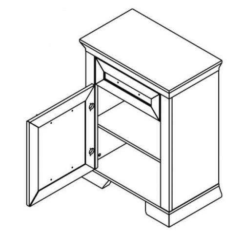 комод содержит один выдвижной ящик и одно закрытое отделение с полкой внутри |