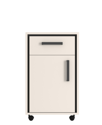 Тумба мобильная KON1D1S Прайм от Gerbor — стильное и продуманное решение для офиса, где функциональность сочетается с эстетикой, создавая комфортную и организованную рабочую среду. Тумба мобильная на колесиках содержит один выдвижной ящик и одно закрытое отделение с распашной дверцей, обеспечивая удобное хранение и легкий доступ к необходимым вещам. Тумба восхищает выразительной современной эстетикой, где утонченная палитра «кашемира» и глубокого «черного» сочетается с четкой геометрией форм, изящные ручки Etera Plast, колесики TYP K-40 и премиальная фурнитура, превращают каждый элемент в гармоничную часть цельного пространства, наполненного стилем, комфортом и функциональностью. Прайм Gerbor — инструмент для создания стильного и продуманного офиса, где каждая деталь способствует результативной работе, вдохновляет и отражает респектабельный облик компании.