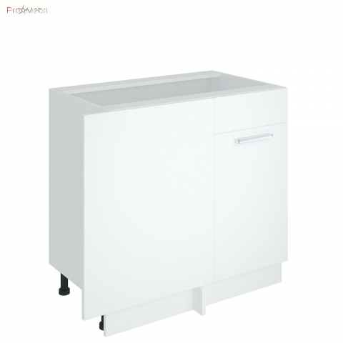 Функциональная и вместительная нижняя угловая тумба КН100x60 Алина Сокме прекрасно подойдет для хранения тяжелых и объемных вещей — всего того, что сложно доставать с верхних полок. Тумба нижняя с одной дверкой и глухим фасадом, содержит одно закрытое отделение с полочкой внутри, для хранения кастрюль различного размера, сковород, кухонной техники (например, комбайна или соковыжималки) и других крупногабаритных и тяжелых предметов. Для удобства двери могут навешиваться как с правой стороны, так и с левой. Столешница комплектуется и продается отдельно. Корпус и фасады изготавливаются из качественного ДСП толщиной 16 мм в идеально чистом «белом» цвете, позволяющем создавать всевозможные шедевры с неким шармом и очарованием, располагая к себе человека и создает комфортную атмосферу. Торцевые поверхности всех внутренних и наружных элементов изделий облицованы кромкой ABS толщиной 0,5/1 мм, придавая мебели завершенный красивый и ухоженный вид. Коллекция привлекает внимание современным дизайном; цветом чистоты и благородства, который сделает кухню необыкновенно притягательной и изящной; продолговатыми пластиковыми ручками, серебристого цвета; прочными ножками, способствующие максимальной устойчивости с цокольными планками, которые комплектуются силиконовым профилем, предотвращая попадание влаги и грязи; фирменными комплектующими: роликовыми направляющими GTV и петлями без доводчика Hafele, которые обеспечивают максимальный комфорт в использовании. Белоснежная кухня Алина Сокме - зрительно расширит пространство и подарит ощущение свободы, заряд положительной энергии и хорошего настроения.