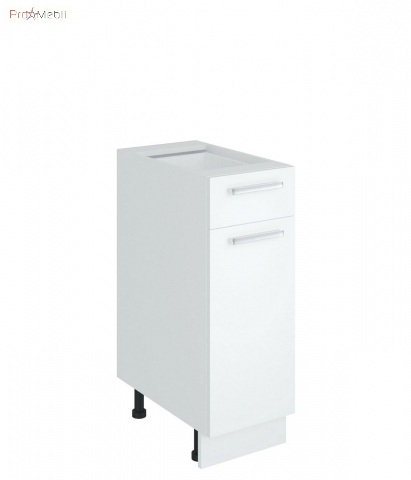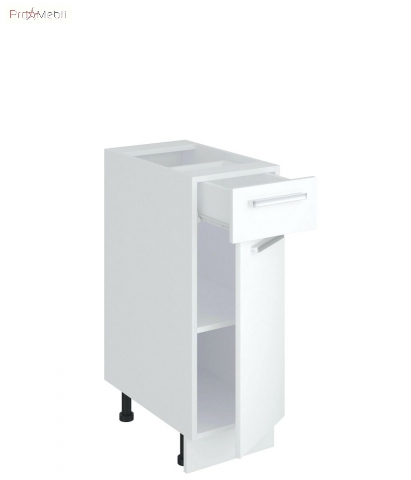 Функциональная и вместительная нижняя тумба Н30 Алина Сокме прекрасно подойдет для хранения кухонной утвари различного размера, сковород, кухонной техники и других крупногабаритных и тяжелых предметов. Данная конструкция оснащена одним закрытым отделением с полочкой внутри, и небольшими выдвижным ящиком, для хранения столового инвентаря. Для удобства двери могут навешиваться как с правой стороны, так и с левой. Столешница комплектуется и продается отдельно. Корпус и фасады изготавливаются из качественного ДСП толщиной 16 мм в идеально чистом «белом» цвете, позволяющем создавать всевозможные шедевры с неким шармом и очарованием, располагая к себе человека и создает комфортную атмосферу. Торцевые поверхности всех внутренних и наружных элементов изделий облицованы кромкой ABS толщиной 0,5/1 мм, придавая мебели завершенный красивый и ухоженный вид. Коллекция привлекает внимание современным дизайном; цветом чистоты и благородства, который сделает кухню необыкновенно притягательной и изящной; продолговатыми пластиковыми ручками, серебристого цвета; прочными ножками, способствующие максимальной устойчивости с цокольными планками, которые комплектуются силиконовым профилем, предотвращая попадание влаги и грязи; фирменными комплектующими: роликовыми направляющими GTV и петлями без доводчика Hafele, которые обеспечивают максимальный комфорт в использовании. Белоснежная кухня Алина Сокме - зрительно расширит пространство и подарит ощущение свободы, заряд положительной энергии и хорошего настроения.