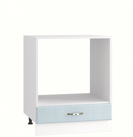 Компактная напольная тумба Н60Пл LUX кухня Прованс Світ Меблів - элемент нижнего яруса модульной кухни, прекрасно подойдет под духовой шкаф. Тумба нижняя поможет интегрировать духовой шкаф, сохранив рабочую поверхность, и функционально распорядиться внутренним пространством шкафов. И, конечно же, придать более целостный и гармоничный вид общему дизайну кухни, создавая зону для приготовления пищи. Столешница комплектуется и продается отдельно. Дополнительно к тумбе можно заказывать цокольные планки, которые предотвращают попадание влаги и грязи, либо регулируемые ножки в цвете алюминий, вместо царги. Корпус изготавливается из качественного ламинированного ДСП в популярных цветовых решениях «белый», «дуб сонома» и «графит» с текстурным фасадом из МДФ с фрезерованным рисунком в нежном оттенке «голубая лагуна». Кухня Прованс голубая лагуна Світ Меблів довольно интересное и оригинальное решение для смелых и уверенных в себе людей, которая никогда не будет казаться скучной и обыденной, ведь голубой цвет привлекает внимание и запоминается.