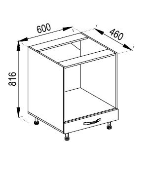 тумба нижняя для духовки содержит открытое отделение, внизу расположен один выдвижной ящик |