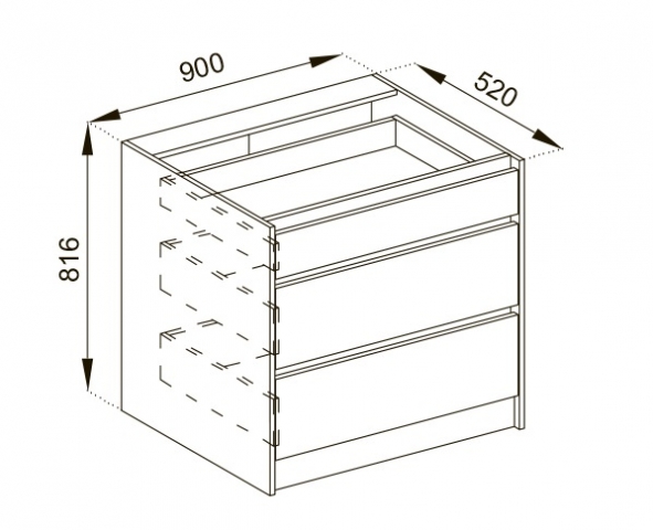 тумба нижняя содержит три выдвижных ящика |