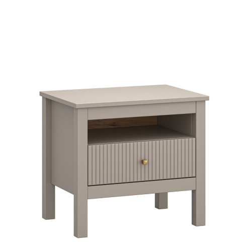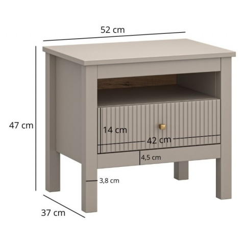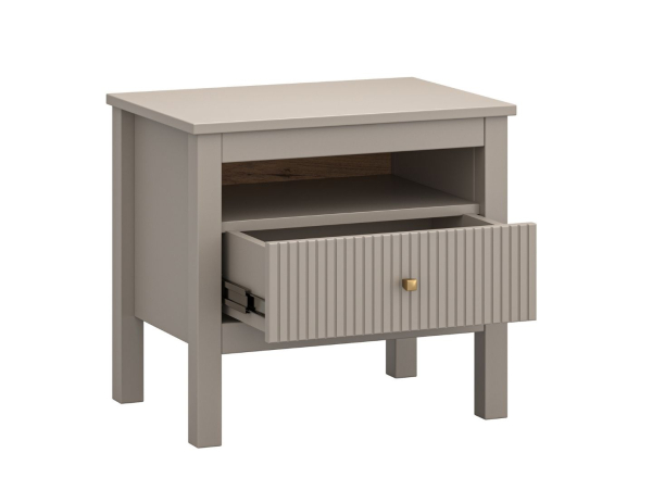 Тумба прикроватная 1S Kleo Mebel Bos настоящее воплощение стиля, роскоши и элегантности, превращающее любой интерьер —спальни — в изысканное пространство, наполненное теплом и уютом, где каждая деталь уникального дизайна становится акцентом, который привлекает внимание и создает атмосферу гармонии и красоты. Тумба прикроватная содержит один выдвижной ящик и открытую полочку, обеспечивая удобное хранение необходимых мелочей и создавая аккуратное пространство рядом с кроватью. Мебель поражает изысканной эстетикой, создавая атмосферу, в которой невозможно не задержаться; тонкая фрезеровка на фасадах придает мебели необыкновенную глубину и текстурность; золотистые металлические ручки становятся не просто акцентом, а настоящим элементом стиля, подчеркивая современный характер коллекции; высокие ножки придают мебели легкость и элегантность, визуально расширяя пространство и создавая ощущение воздушности в интерьере; фирменные комплектующие, обеспечивают плавность и бесшумность работы, принося удовольствие от каждого прикосновения. Kleo Mebel Bos — ваш идеальный стиль жизни.