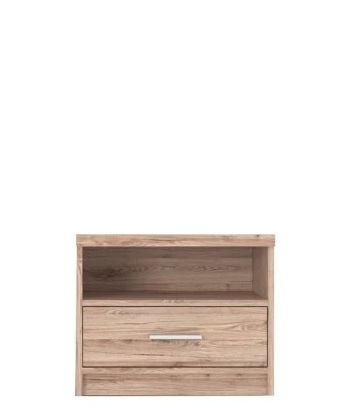 Тумба прикроватная KOM1S Шанталь Gerbor воплощение элегантности и стильной, вечной классики, вдохновленная текстурой необработанного дерева и предназначена для обустройства привлекательных интерьеров в спальни и детской комнате. Тумба содержит открытую нишу и один выдвижной ящик. Коллекция привлекает внимание элегантным классическим минимализмом; простыми геометрическими формами; неповторимой глубокой текстурой натурального дерева в привлекательном оттенке «дуб сан-ремо светлый»; серебристыми продолговатыми пластиковыми ручками; прочным основанием, способствующим максимальной устойчивости; фирменными комплектующими. Мебель Шанталь Гербор - воплощение теплоты и неповторимой атмосферы в каждом доме.