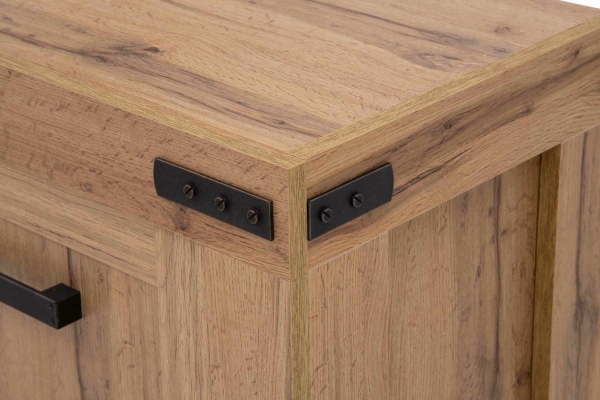 ТВ тумба 1D1S/160 Mortiz Mebel Bos элегантная и атмосферная прекрасно дополнит интерьер гостиной и столовой. Тумба содержит один выдвижной ящик, одно закрытое отделение и открытую нишу. Корпус и фасады изготовлены из качественного ламинированного ДСП толщиной 16 мм с декоративными массивными планка из МДФ толщиной 16 мм и 19 мм на фасадной части, в природной эстетике с трещинами и многочисленными характерными признаками древесины, в цвете дуб вотан. Главными особенностями являются классические формы; грубоватая отделка с естественной красотой древесного декора; природная цветовая палитра; пластиковая декоративная фурнитура в виде скоб, на боках мебели; широкие боковые планками, которые плавно перетекают в устойчивые ножки; черные массивные пластиковые ручки с эффектом состаривания; фирменные комплектующие. Мебель Мортиз Мебель Бос - сочетание традиций и современности, которые создадут невероятное ощущение уюта и особую атмосферу месту, куда захочется возвращаться после рабочего дня.
