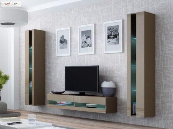 Купить ТВ тумбу навесную 140 New Vigo латте/латте глянец Cama недорого в Украине, Киеве, Днепре