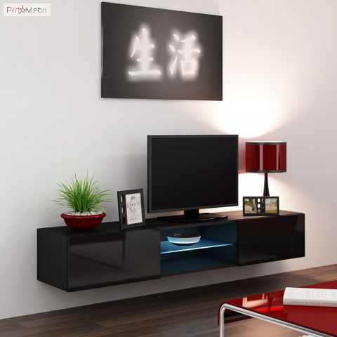 Купить ТВ тумбу навесную 180 Glass Vigo черный матовый/черный глянец Cama недорого в Украине, Киеве, Днепре