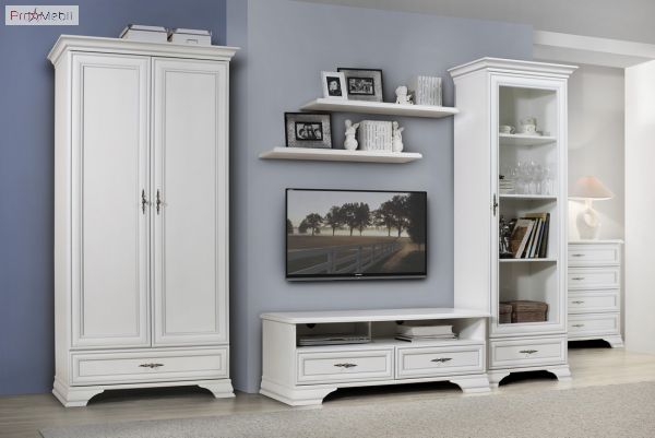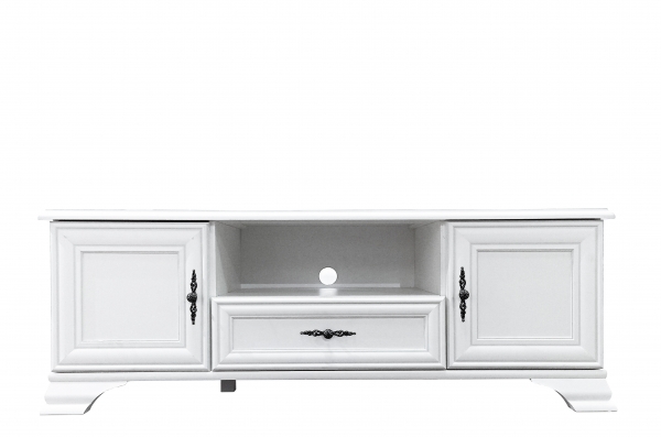 ТВ тумба RTV2D1S Кентуки ВМК (БРВ) выполнена в лучших традициях классики, с первого взгляда покоряет своей грациозностью и изяществом и прекрасно дополнит интерьер гостиной. Тумба содержит один выдвижной ящик, два закрытых отделения и одну открытую нишу с техническим отверстием для проволок в задней стенке. Характерными особенностями коллекции является изящный дизайн; патина, нанесенная на фасады, делает мебель объемней и создает эффект старины; витиеватые металлические ручки бронзового цвета; декоративные планки; резные карнизы и ножки являются бесспорным украшением коллекции; а фирменные комплектующие: петли и шариковые направляющие полного выдвижения, гарантируют надежность и долговечность изделиям. Коллекция Кентуки ВМК (БРВ) располагает к себе, излучая особую легкость, очарование, естественность и изящность и отлично подойдет любителям уютных и теплых комнат.