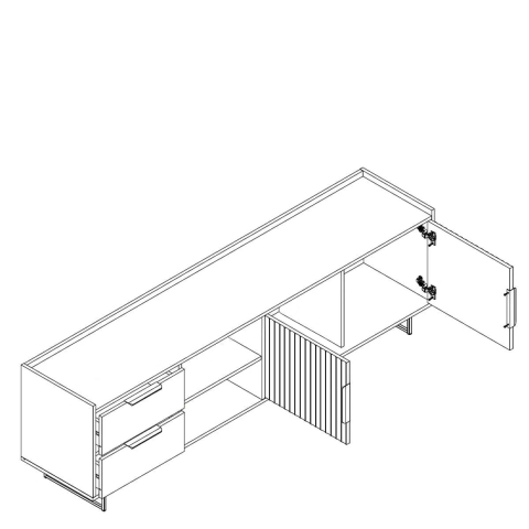тумба содержит два выдвижных ящика, два закрытых отделения и открытые ниши |