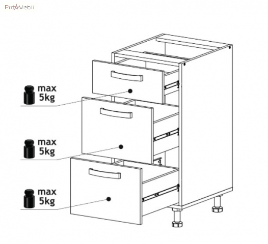 Вишукана і містка нижня тумба НШ40 Шарлотта Сокме чудово підійде для зберігання різної кухонного приладдя - різних столових приладів, посуду або інгредієнтів. Тумба нижня містить три висувні шухляди. Стільниця комплектується та продається окремо. Додатково до тумби можна замовити цокольні планки, які запобігають потраплянню вологи та бруду, а також декоративні торцеві панелі, які додають закінчений і естетично правильний вигляд. Корпус і фасади виготовляються з якісного ламінованого ДСП товщиною 16 мм і 28 мм в поєднанні «білого» корпусу з деревоподібними нижніми фасадами: «дуб крафт сірий», «дуб крафт білий», «дуб крафт золотий», «дуб сонома», «дуб веллінгтон», «ательє світле» та «білого кольору». Торцеві поверхні всіх внутрішніх і зовнішніх елементів виробів облицьовані крайкою ABS товщиною 0,5/1 мм, надаючи меблям завершений гарний і доглянутий вигляд. Колекція привертає увагу вишуканістю з індивідуальним стилем; простатою і лаконічними лініями; комбінацією кольорів фасадів; довгастими, хромованими металевими ручками; міцними ніжками, що сприяють максимальної стійкості; фірмовими комплектуючими: телескопічними напрямними, які забезпечують максимальний комфорт у використанні. Кухня Шарлотта Сокме - чудова і функціональна, втілить в життя будь-які найсміливіші дизайнерські рішення, і наділить Ваш будинок затишною атмосферою тепла і гостинністю.