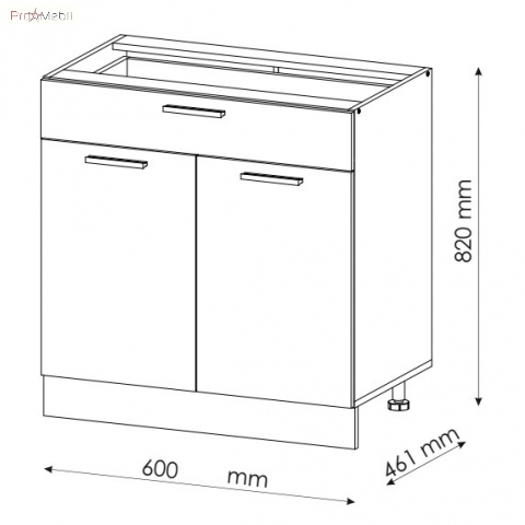 тумба нижня дводверна, містить одне закрите відділення з полицею всередині і одну висувну шухляду |