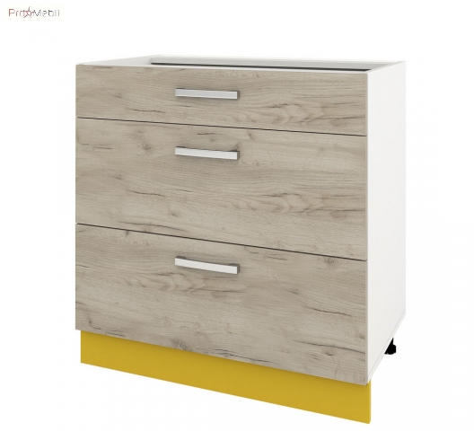 Вишукана і містка нижня тумба НШ60 Шарлотта Сокме чудово підійде для зберігання різної кухонного приладдя - різних столових приладів, посуду або інгредієнтів. Тумба нижня містить три висувні шухляди. Стільниця комплектується та продається окремо. Додатково до тумби можна замовити цокольні планки, які запобігають потраплянню вологи та бруду, а також декоративні торцеві панелі, які додають закінчений і естетично правильний вигляд. Корпус і фасади виготовляються з якісного ламінованого ДСП товщиною 16 мм і 28 мм в поєднанні «білого» корпусу з деревоподібними нижніми фасадами: «дуб крафт сірий», «дуб крафт білий», «дуб крафт золотий», «дуб сонома», «дуб веллінгтон», «ательє світле» та «білого кольору». Торцеві поверхні всіх внутрішніх і зовнішніх елементів виробів облицьовані крайкою ABS товщиною 0,5/1 мм, надаючи меблям завершений гарний і доглянутий вигляд. Колекція привертає увагу вишуканістю з індивідуальним стилем; простатою і лаконічними лініями; комбінацією кольорів фасадів; довгастими, хромованими металевими ручками; міцними ніжками, що сприяють максимальної стійкості; фірмовими комплектуючими: телескопічними напрямними, які забезпечують максимальний комфорт у використанні. Кухня Шарлотта Сокме - чудова і функціональна, втілить в життя будь-які найсміливіші дизайнерські рішення, і наділить Ваш будинок затишною атмосферою тепла і гостинністю.