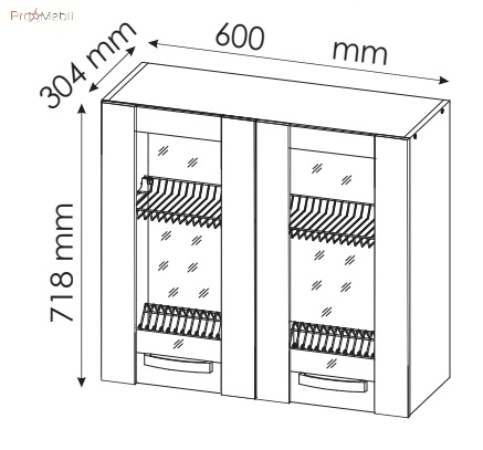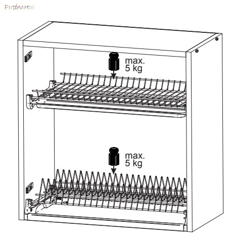 шафка верхня містить одне закрите відділення з особливими решітками, призначеними для зберігання чашок і тарілок |