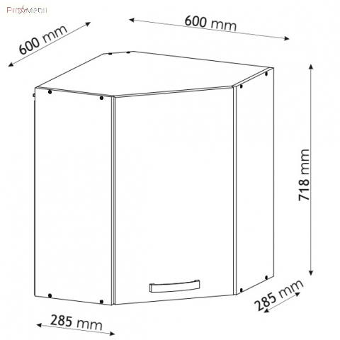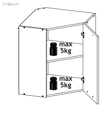 шафка верхня кутова містить одне закрите відділення з полицею всередині |