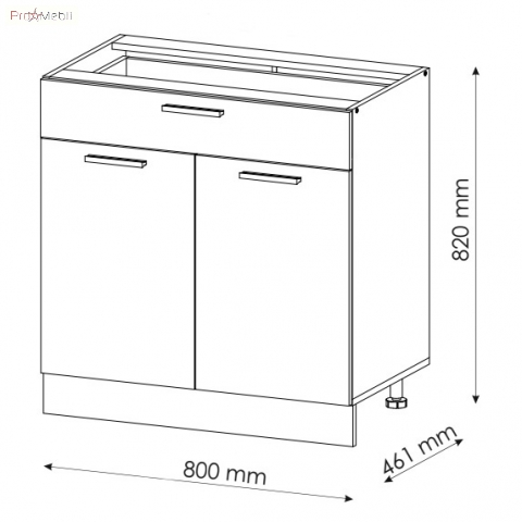 тумба нижня дводверна, містить одне закрите відділення з полицею всередині і одну висувну шухляду |