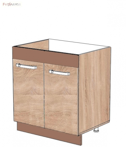 Функціональна і містка нижня тумба під мийку НМ80 Аліна Сокме чудово підійде для зберігання кухонного приладдя. Дана конструкція обладнана двома дверцятами з одним закритим відділенням, де можна зберігати різні хімічні засоби по догляду за кухнею, великий посуд та інші предмети, а також підійде для того, щоб розмістити зверху чашу необхідної ємності. Корпус і фасади виготовляються з якісного ДСП товщиною 16 мм в цікавому поєднанні кольорів: корпус виконаний в кольорі «дуб сонома» максимально наближеному до текстури натуральної деревини з контрастними кавовими ставками в кольорі «лате». Торцеві поверхні всіх внутрішніх і зовнішніх елементів виробів облицьовані крайкою ABS товщиною 0,5/1 мм, надаючи меблям завершений гарний і доглянутий вигляд. Колекція привертає увагу сучасним дизайном; незвичайними відтінками; довгастими пластиковими ручками, сріблястого кольору; міцними ніжками, що сприяють максимальної стійкості з цокольними планками, які комплектуються силіконовим профілем, запобігаючи потрапляння вологи і бруду; фірмовими комплектуючими: завісами без дотягу Hafele, які забезпечують максимальний комфорт у використанні. Кухня Аліна Сокме - естетична і ергономічна, стане родзинкою і улюбленим місцем, де вам буде приємно проводити час.