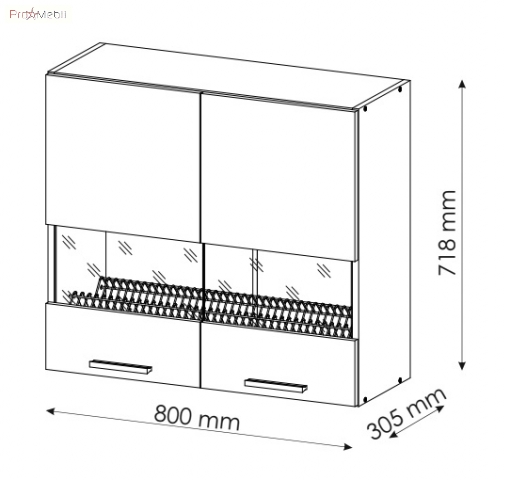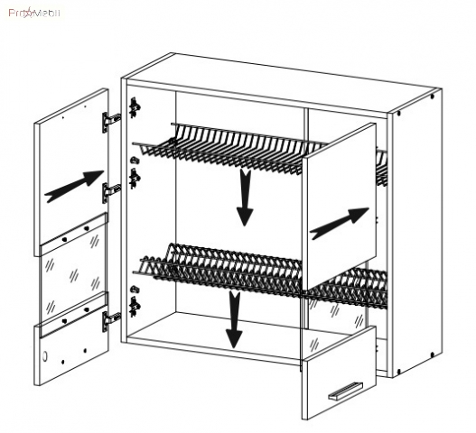 шафка верхня містить одне закрите відділення з особливими решітками, призначеними для зберігання чашок і тарілок |