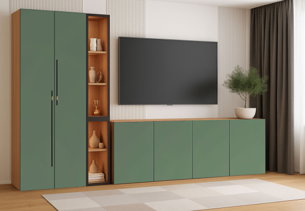 Витончена і незвичайна антресоль 800 Спейс Світ Меблів створить відчуття легкості і порядку: її спокійний, стриманий дизайн допомагає зібрати інтер'єр в єдину композицію, додати кімнаті акуратний сучасний ритм і органічно вписатися в вітальню, спальню, дитячу, кабінет або передпокій, стаючи тією деталлю, яка робить простір зручним і візуально струнким. Внутрішній простір організований просто і практично: два відділення створює акуратні ніші для коробок, аксесуарів або сезонних речей, дозволяючи тримати все прихованим і впорядкованим, завдяки чому антресоль стає зручним доповненням для дводверної шафи або самостійним верхнім модулем у складі гардероба. Модуль привертає увагу сучасним дизайном; високою функціональністю і можливістю вільного комбінування; широким вибором кольорів, що дозволяє легко підібрати поєднання під будь-який інтер'єр: корпус - м'який «кашемір», фактурний «дуб аппалачі» або світла «німфея альба», фасади - тоффі, кашемір, зелений димчастий, німфея альба або графіт, з матовою або глянсовою обробкою; системою Push to Open; фірмовою фурнітурою, що забезпечує максимальний комфорт у щоденному використанні. Модульні меблі Спейс Світ Меблів підкреслять індивідуальність і допоможуть створити по-справжньому особливий інтер'єр - продуманий, стильний і наповнений відчуттям сучасного комфорту.