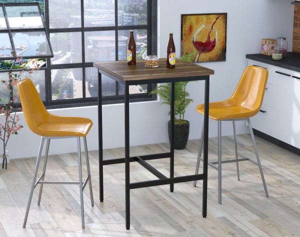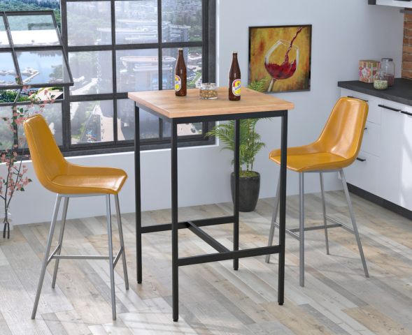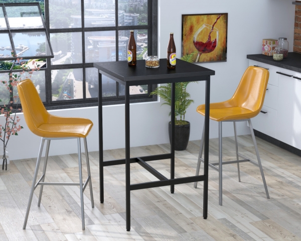 Барний стіл Бруно від Loft Design — стильний і функціональний акцент для сучасної кухні або затишної офісної обідньої зони. Коли в офісі не вистачає місця для повноцінного обіднього столу, компактний і високий барний стіл стає справжньою знахідкою. Його лаконічна форма і повітряний силует допомагають візуально зонувати простір, створюючи атмосферу стильного кафе прямо на робочому місці, не порушуючи при цьому діловий ритм. Бруно розрахований на двох — ідеальне місце для швидкого обіду, кава-брейку або невимушеної розмови. Стільниця розміром 650 × 650 мм виконана з міцного ламінованого ДСП товщиною 18 мм і прекрасно витримує щоденні навантаження. Міцний каркас з квадратної сталевої труби 25 × 25 мм забезпечує стійкість, а горизонтальні поперечини 40 × 20 мм додають конструкції надійності і легкості. Каркас покритий стійкою до стирання порошковою фарбою в елегантному чорному матовому відтінку, який гармонійно впишеться в будь-який сучасний інтер'єр. Регульовані ніжки дозволяють встановити стіл навіть на нерівній поверхні і захищають підлогу від подряпин. Барний стіл Бруно затишний куточок для відпочинку і натхнення у вашому просторі.