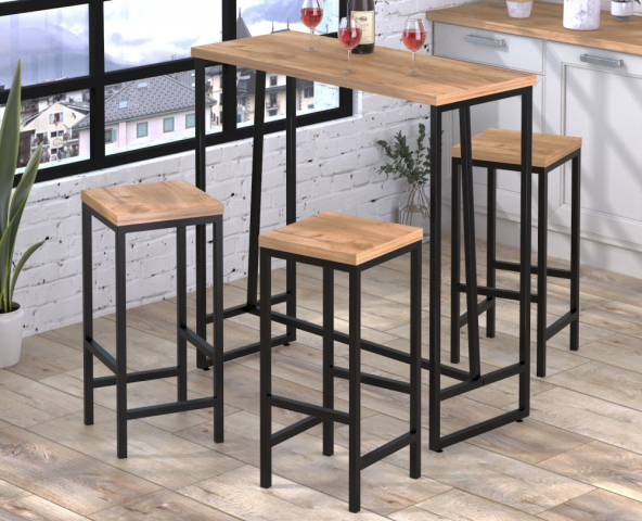 Барний стіл BS-110 від Loft Design — стильне і функціональне рішення, яке органічно впишеться як в сучасний офіс, так і в затишну кухню. В умовах обмеженого офісного простору, де великий обідній стіл з традиційними стільцями здається недоречним, BS-110 стає справжньою знахідкою. Його висока конструкція ненав'язливо зонує простір і викликає асоціації скоріше з атмосферою затишного кафе, ніж з кухнею, створюючи комфортне місце для перерви, яке не вибивається з робочого середовища. Компактний розмір столу розрахований на двох, щоб за ним можна було спокійно випити каву або перекусити, не відволікаючись від справ. Солідна стільниця з ламінованого ДСП і надійний розбірний каркас з квадратної металевої труби (25×25 мм, товщина стінки 1,2 мм) забезпечують міцність і стійкість конструкції. Продумана поперечина для упору ніг і поздовжня балка під стільницею роблять використання столу особливо зручним. Регульовані ніжки дозволяють ідеально виставити стіл навіть на нерівній підлозі, а збірка каркаса за допомогою гвинтів під шестигранник не вимагає зайвих зусиль.