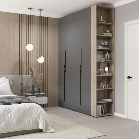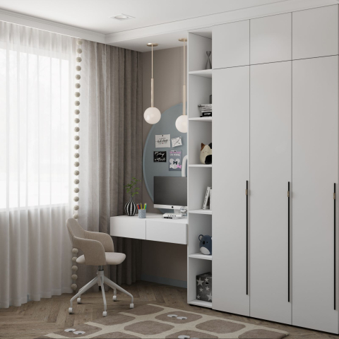 Витончений і незвичайний блок шухляд 400 R Спейс Світ Меблів створить відчуття легкості та порядку: його спокійний, стриманий дизайн допомагає зібрати інтер'єр в єдину композицію, додати кімнаті акуратний сучасний ритм і органічно вписатися в вітальню, спальню, дитячу, кабінет або передпокій, стаючи тією деталлю, яка робить простір зручним і візуально струнким. Внутрішнє наповнення продумано до дрібниць: дві висувні шухляди допомагають акуратно розкласти дрібні речі і підтримувати порядок, завдяки чому такий модуль робить шафу або гардеробну систему помітно більш функціональною і зручною в щоденному використанні. Модуль привертає увагу сучасним дизайном; високою функціональністю і можливістю вільного комбінування; широким вибором кольорів, що дозволяє легко підібрати поєднання під будь-який інтер'єр: корпус - м'який «кашемір», фактурний «дуб аппалачі» або світла «німфея альба»; фірмовою фурнітурою, що забезпечує максимальний комфорт у щоденному використанні. Модульні меблі Спейс Світ Меблів підкреслять індивідуальність і допоможуть створити по-справжньому особливий інтер'єр - продуманий, стильний і наповнений відчуттям сучасного комфорту.