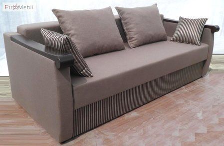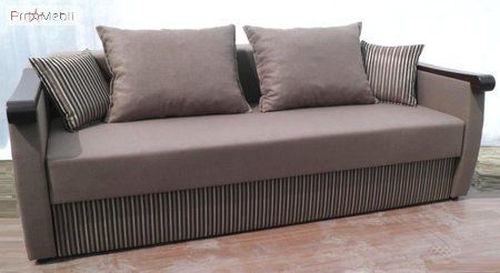 Диван Леон - тримісний розкладний диван українського виробника м'яких меблів Орбіта. Головними особливостями моделі є сучасний стильний дизайн, невеликі габаритні розміри, наявність чотирьох зручних подушок, дерев'яні підлокітники. Механізм розкладки – єврокнижка. Спальне місце моделі 142х195 см підійде для комфортного сну двом дорослим. Диван Лаванда має містку білизну.
