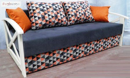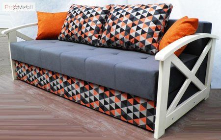 Диван Модена - тримісний розкладний диван українського виробника м'яких меблів Орбіта. Головними особливостями моделі є сучасний стильний дизайн, невеликі габаритні розміри, наявність чотирьох зручних подушок, а також дерев'яні шпильки та боковини оригінальної форми. Механізм розкладки – єврокнижка. Спальне місце моделі 140х195 см підійде для комфортного сну двом дорослим. Диван Модена має містку нішу для білизни.