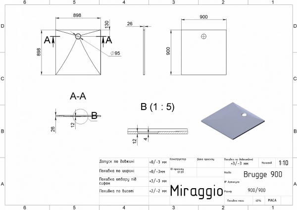 Характеристики Душовий піддон Brugge 900 Miraggio