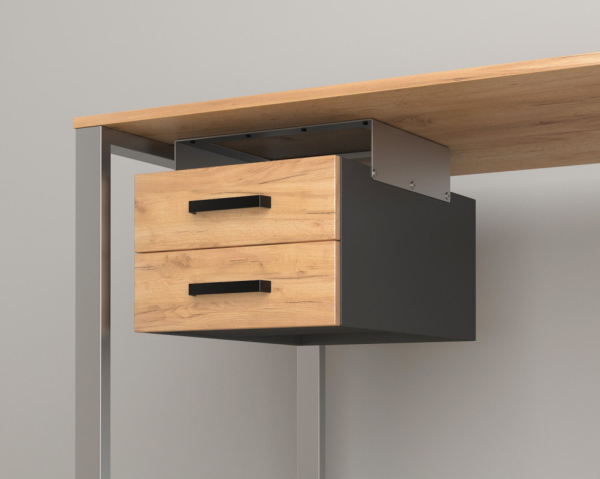 Навісний ящик BX-2 - справжній майстер порядку у вашому робочому просторі. Він органічно впишеться під стільницю більшості столів від Loft Design і легко поєднається з іншими моделями, перетворюючи будь-який стіл на більш функціональне і затишне місце для роботи. У світі, де папір поступається місцем електронним носіям, дрібні предмети, як і раніше, нікуди не зникли: ручки, скріпки, зошити, блокноти, зарядні пристрої, навушники... Все це так і норовить заполонити робочий стіл. BX-2 допоможе вам навести порядок раз і назавжди. У нижній шухляді зручно зберігати великі предмети — книги, папки, блокноти, а верхня буде під рукою для всього, що потрібно щодня. В кінці дня ви легко прибираєте всі речі, і ваш стіл знову радує погляд чистотою і свободою. Елегантний металевий тримач, виготовлений з гнутого листового металу і пофарбований в сріблястий колір, підтримує ящиковий блок з ДСП в модному відтінку Антрацит. Фасади доступні в стильних варіантах: світлий і затишний дуб крафт золотий, виразний горіх модена, благородний дуб палена, глибокий венге луїзіана, лаконічний німфея альба і стриманий антрацит. Кожен ящик оснащений телескопічними напрямними повного висунення, що забезпечує плавне, легке і безшумне відкриття. Внутрішні розміри — 260 мм за шириною, 434 мм за глибиною і 75 мм за висотою — продумані для зберігання всього необхідного без зайвих компромісів. BX-2 стильний акцент, який підкреслить ваш смак і зробить робочу зону по-справжньому організованою і надихаючою.