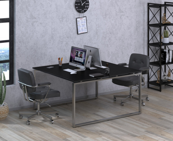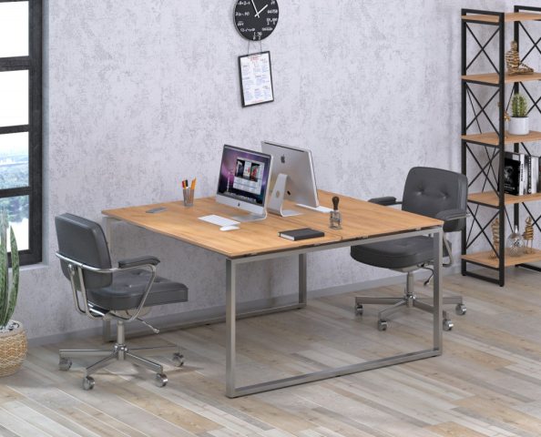 Письмовий стіл Q-140 Loft Design — ідеальний робочий простір для двох, де стиль поєднується з функціональністю. Здвоєний стіл не просто економить місце - він створює атмосферу єдності і командного духу у вашому офісі. Замість двох окремих столів - один солідний і елегантний, що підкреслює статус і сучасність вашого простору. Натхненний стилем лофт, стіл Q-140 поєднує в собі лаконічність і практичність. Тонка, немов паряча над металевим каркасом стільниця не захаращує простір, а навпаки - відкриває його, наповнюючи офіс світлом і повітрям. Надійний і водночас легкий каркас з хромованих труб з профілем 50×25 мм вражає своєю міцністю і витримує будь-які навантаження завдяки поздовжнім підсилювальним балкам. Кожна деталь конструкції — від потужних гвинтів до регульованих ніжок — продумана для комфорту і довговічності. Стіл легко зібрати, розібрати і адаптувати під будь-які умови, включаючи нерівну підлогу. Поверхня з преміального ламінованого ДСП Swiss Krono товщиною 18 мм в чотирьох відтінках з натуральною текстурою дерева надає робочому місцю особливу теплоту і затишок, а елегантна ПВХ-кромка завершує образ вишуканих меблів. Q-140 Loft Design — простір для творчості, продуктивності та справжньої командної взаємодії.