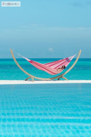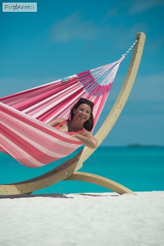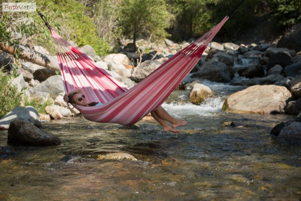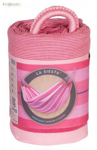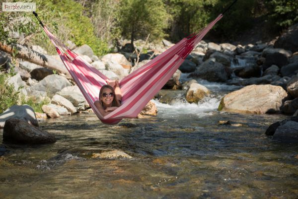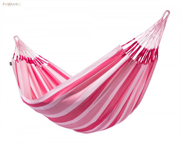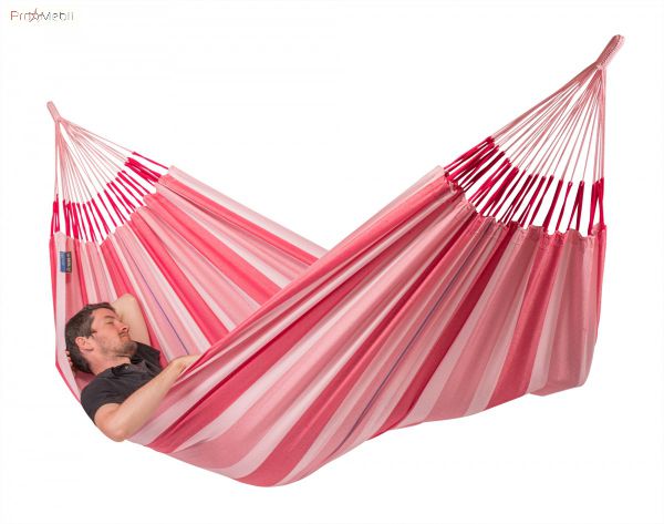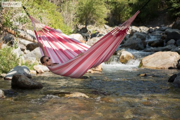 Подвесной гамак для двоих Aventura candy из погодостойко гоматериала идеально подходит для крепкого сна во время отдыха. Гамак изготовлен в Колумбии из погодостойкого материала HamacTex. Большое количество шнуров для подвешивания оптимально распределяют вес вашего тела в гамаке и гарантируют удобный отдых и долговечность гамака. Особо прочные плетёные канаты обеспечивают дополнительную надёжность.