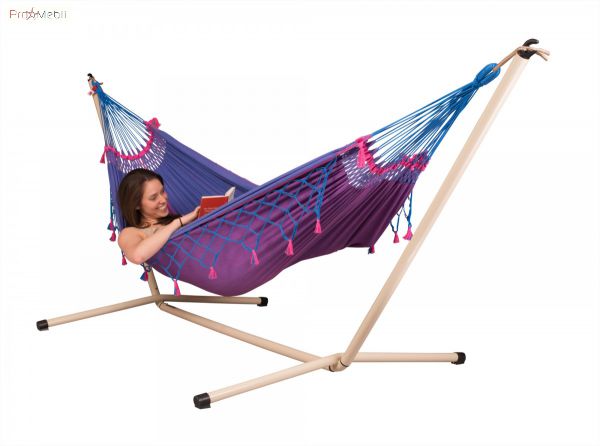 Этот подвесной гамак для двоих из чистого хлопка объединяет в себе традиции ручного ремесла Бразилии с качеством и необычайным комфортом. Подвесной гамак Copa является нашей данью уважения его родине - Бразилии и её достижениям в футболе. В наличии имеются гамаки 4 различных цветов: подвесной гамак Copa samurai blue в цвета национальной сборной Японии - идеальное место для отдыха из страны постоянного веселья. Благодаря своей эластичности ткань плотно облегает тело. Типичным элементом бразильского подвесного гамака является плетёная сетка, украшенная бахромой, а также большое количество шнуров для подвешивания, которые оптимально распределяют вес вашего тела в гамаке и гарантируют удобный отдых.