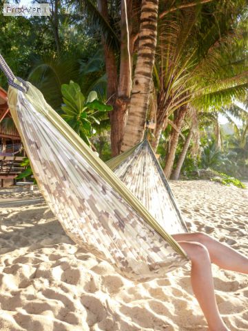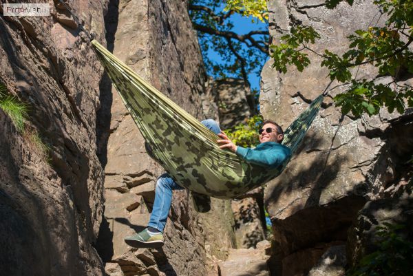 Окунитесь в мир дикой природы: туристический подвесной гамак для двоих Colibri Camo forest камуфляжно зелёного цвета является идеальным спутником для пеших прогулок. Просто найдите красивый пейзаж, установите гамак Colibri Camo forest и слейтесь с природой! Как и все туристические подвесные гамаки фирмы La Siesta изготовлен из парашютного шёлка. Этот материал достаточно прочный и идеально подходит для использования на свежем воздухе. Каждый туристический подвесной гамак Colibri имеет встроенную систему для подвешивания, состоящую из канатов и крюков. Благодаря этому вы можете быстро упаковать Ваш Colibri, а также быстро подвесить гамак в любом месте и уютно отдохнуть, независимо от того находитесь ли Вы дома или в дороге.