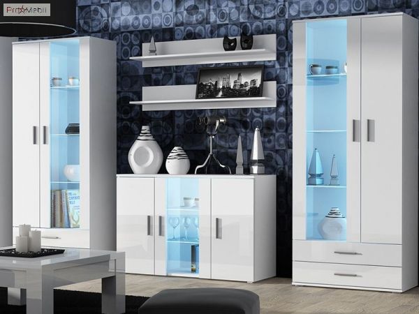 Вітальня Soho Cama - виразна і оригінальна від польської фабрики Cama Meble, для облаштування яскравої і сучасної вітальні. Корпус виконаний з ДСП високої якості. Фасади виконані з МДФ. Головною родзинкою колекції Сохо Cama стали її прості геометричні форми, функціональність елементів, стильні і зручні довгасті пластикові ручки, глянцеве покриття і різноманітність кольорів, надійна і практична фурнітура від німецького виробника Hettich забезпечує максимально комфортне використання, високоміцне загартоване скло товщиною 8 мм, а окремі елементи додатково можна комплектувати кольоровою LED-підсвіткою (білою, блакитною, червоною або зеленою) або кольоровим RGB-підсвічуванням (16 кольорів) з пультом управління, за допомогою якого можна змінювати кольори, в залежності від Ваших переваг на даний момент. Вітальня Soho Cama відрізняється підвищеною місткістю і функціональністю, і включає в себе: дві просторі високі вітрини в яких можна розмістити велику кількість речей, чарівний та функціональний комод і багатофункціональні полки. Набір меблів у вітальню Сохо Кама дозволяє створити унікальний, стильний і сучасний інтер'єр вітальні. Купити меблі для вітальні Soho Cama можна в нашому інтернет-магазині ProMebli.ua з доставкою по всій Україні. Оплата за готівковий і безготівковий розрахунок, в кредит, розстрочку або оплату частинами від ПриватБанк.