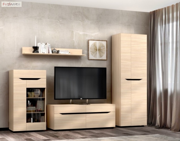 Гарнітур у вітальню Аякс Майстер Форм - стильний і сучасний набір меблів від українського виробника Майстер Форм для облаштування вітальні. Корпус і фасадні частини виготовлені з якісного ламінованого ДСП, в безпрограшному поєднанні світлих і темних відтінків: дуб молочний або дуб сонома з венге магія. Торцеві поверхні всіх внутрішніх і зовнішніх елементів виробів облицьовані пластиковою кромкою, надаючи меблям завершений гарний і доглянутий вигляд. Меблі Аякс Майстер Форм привертають увагу своїм легким і сучасним дизайном; простими прямокутними формами; застосуванням двокольорової гами; відсутністю традиційних ручок для відкривання, їх роль виконують виїмки в фасаді, декоровані з внутрішнього боку контрастною планкою; пластиковими регульованими ніжками; фірмовими комплектуючими: телескопічними напрямними і фірмовими завісами, які забезпечують максимальний комфорт у використанні. Гарнітур включає в себе вітрину низьку, яка має дверцята зі вставкою з бронзового загартованого скла, ТВ-тумбу, навісну полицю і містку шафу. Всі елементи можна вільно комбінувати на свій розсуд, переставляти, міняти місцями, здобувати додаткові предмети в разі потреби для облаштування всього будинку в єдиному стилі. Меблі Аякс Майстер Форм чудово прикрасять інтер'єр Вашого будинку і дозволять підкреслити Вашу індивідуальність. Купити модульну систему Аякс Майстер Форм можна в нашому інтернет-магазині ProMebli.ua з доставкою по всій Україні. Оплата за готівковий і безготівковий розрахунок, в кредит або розстрочку.