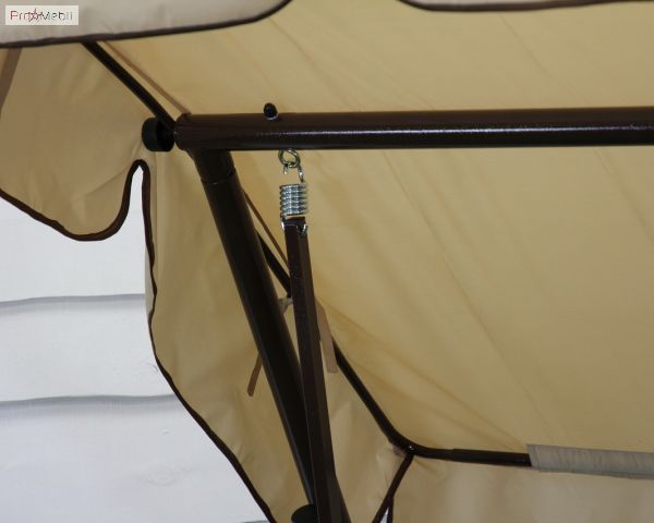 Гойдалка садова Бренда 009 GreenGard - надійна модель гойдалки для відпочинку в саду української фабрики GreenGard. Тримісні гойдалки за типом ліжко, що коливається, в коричневому кольорі подарують незабутні хвилини відпочинку в компанії рідних і друзів. Головною особливістю моделі є наявність захисного тенту, підлокітників, москітної сітки та можливість регулювати нахил спинки до лежачого положення. Більшого комфорту забезпечує м'який матрац. Міцний матеріал каркасу та якісний водовідштовхувальний текстиль забезпечують надійність та довговічність у використанні, а також простоту у догляді.