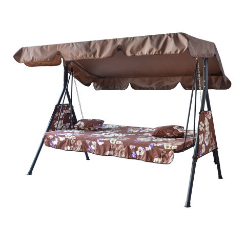 Гойдалка садова Дача бежева квітка Vitan - варіант преміум класу для відпочинку в саду української фабрики Vitan. Каркас даної моделі виконаний із сталевих труб декількох діаметрів, основним з яких є труба діаметром 38 мм. Весь сталевий каркас покритий полімерним покриттям, для стійкості від корозії, а також для стильності зовнішнього вигляду. Дана конструкція - гойдалка Дача повністю розбирається на окремі компоненти, що дуже зручно для зберігання і транспортування. Для збірки є детальна інструкція, де схематично пояснюється, як зібрати, або розібрати гойдалку. Тент даху зі спеціальної вологостійкої матерії, під назвою Оксфорд, сидіння виготовлено з пружинного блоку і сталевого дроту. На сидінні м'який матрац з поролону 50 мм, тканина бязь Голд - 100% бавовна. На гойдалці можуть розміститися 2 або 3 дорослих особи, а якщо з маленькими дітками то і всі п'ятеро! Максимально допустиме навантаження до 280 кг. Широке сидіння розміром 171х53.5 см дозволить зручно розташуватися на гойдалці і насолодитися відпочинком в ній. Габаритні розміри даної моделі Дача жовта: висота - 160 см, ширина - 200,5 см, глибина - 144 см.