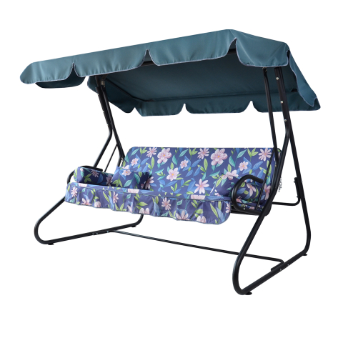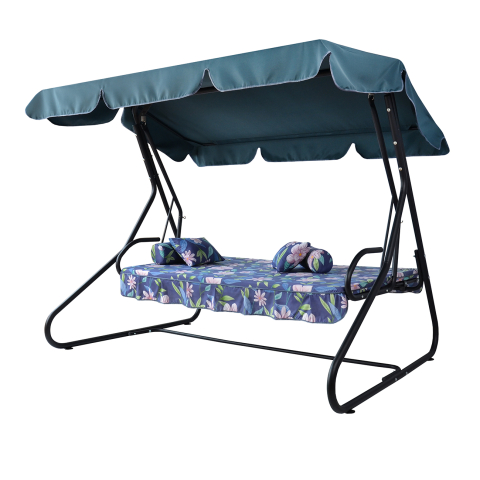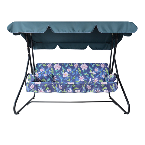 Гойдалка садова Графиня рожеві квіти на синьому Vitan - варіант преміум класу для відпочинку в саду української фабрики Vitan. Каркас даної моделі виконаний із сталевих труб декількох діаметрів, основним з яких є труба діаметром 38 мм. Основа сидіння пружинний блок, оригінальність полягає в тому, що виконаний цей блок методом плетіння металевого дроту, що забезпечує надійність і зручність при сидінні. Весь сталевий каркас покритий полімерним покриттям, для стійкості від корозії, а також для стильності зовнішнього вигляду. Дана конструкція - гойдалка Графиня повністю розбирається на окремі деталі, що дуже зручно для зберігання і транспортування. Для збірки є детальна інструкція, де схематично пояснюється, як зібрати, або розібрати гойдалку. Тент даху зі спеціальної вологостійкої матерії, під назвою поліестер, сидіння виготовлено з пружинного блоку і сталевого дроту. На сидінні м'який матрац з поролону 50 мм, тканина бязь голд - 100% бавовна. На гойдалці можуть розміститися 3-4 дорослих особи, а якщо з маленькими дітками то і все 5-6! Максимально допустиме навантаження до 280 кг. Широке сидіння розміром 171х53.5 см дозволить зручно розташуватися на гойдалці і насолодитися відпочинком в ній. Габаритні розміри даної моделі Графиня: висота - 170 см, ширина - 212 см, глибина - 154 см.