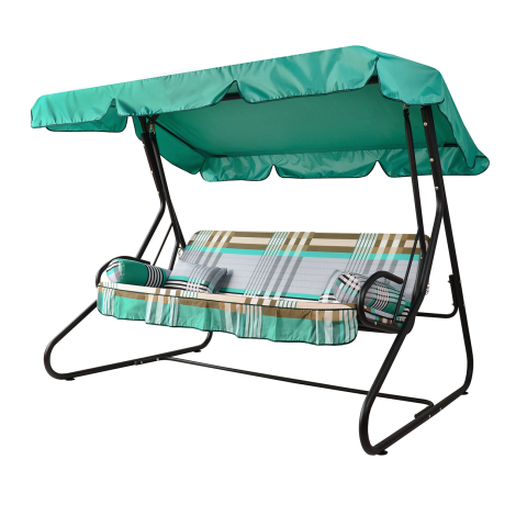 Гойдалка садова Графиня зелено-сіра смужка Vitan - варіант преміум класу для відпочинку в саду української фабрики Vitan. Каркас даної моделі виконаний із сталевих труб декількох діаметрів, основним з яких є труба діаметром 38 мм. Основа сидіння пружинний блок, оригінальність полягає в тому, що виконаний цей блок методом плетіння металевого дроту, що забезпечує надійність і зручність при сидінні. Весь сталевий каркас покритий полімерним покриттям, для стійкості від корозії, а також для стильності зовнішнього вигляду. Дана конструкція - гойдалка Графиня повністю розбирається на окремі деталі, що дуже зручно для зберігання і транспортування. Для збірки є детальна інструкція, де схематично пояснюється, як зібрати, або розібрати гойдалку. Тент даху зі спеціальної вологостійкої матерії, під назвою поліестер, сидіння виготовлено з пружинного блоку і сталевого дроту. На сидінні м'який матрац з поролону 50 мм, тканина бязь голд - 100% бавовна. На гойдалці можуть розміститися 3-4 дорослих особи, а якщо з маленькими дітками то і все 5-6! Максимально допустиме навантаження до 280 кг. Широке сидіння розміром 171х53.5 см дозволить зручно розташуватися на гойдалці і насолодитися відпочинком в ній. Габаритні розміри даної моделі Графиня: висота - 170 см, ширина - 212 см, глибина - 154 см.