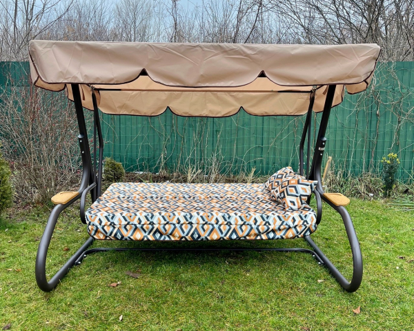 Пориньте в атмосферу затишку та безтурботності разом із садовими гойдалками Лате 036 від GreenGard - справжній оазис комфорту у вашому саду. З першого погляду привертає увагу витончений силует із матово-чорним каркасом із міцної сталевої труби діаметром 60 мм - надійний, як швейцарський годинник, і водночас витончений, немов робота дизайнера. Сидіння, шириною 180 см, легко перетворюється на просторе спальне місце 1150 мм завглибшки, запрошуючи вас відпочити в напівсні під шелест листя і ніжний вітерець. Меблевий велюр з витонченим ромбоподібним малюнком не тільки м'який і приємний на дотик, а й надає гойдалці нотку преміальності. Поролон завтовшки 80 мм у подушках забезпечує той самий глибокий, розслабляючий комфорт, завдяки якому час завмирає. А вологовідштовхувальний тент кольору беж із тканини «Оксфорд» захистить від пекучого сонця або легкого дощику, створюючи відчуття відокремленого намету. Але і це ще не все - вбудована москітна сітка захистить вас від настирливих комах, дозволяючи насолоджуватися вечірнім повітрям без зайвого занепокоєння. Розраховані на чотирьох осіб, гойдалки витримують до 400 кг навантаження, обіцяючи міцність і довговічність на довгі роки. GreenGard Лате 036 - стильний акцент для дачі або тераси, створений для тих, хто цінує естетику, комфорт і гармонію з природою.
