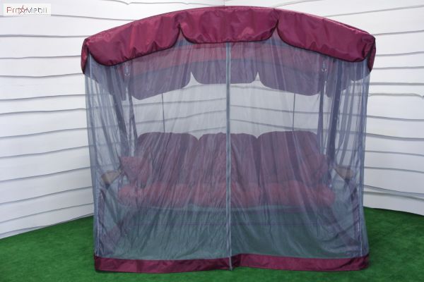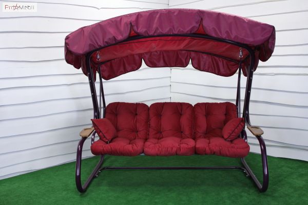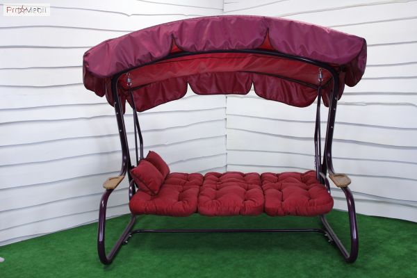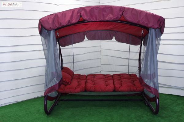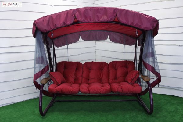 Гойдалка садова Марсала 056 GreenGard з москітною сіткою - варіант преміум класу для відпочинку в саду української фабрики GreenGard. Тримісні гойдалки за типом ліжко, що коливається, в бордовому кольорі подарують незабутні хвилини відпочинку в компанії рідних і друзів. Головною особливістю моделі є наявність захисного тенту, підлокітників, москітної сітки та можливість регулювати нахил спинки до лежачого положення. Також додатково можна укомплектувати поличками для різних дрібниць. Більшого комфорту забезпечує м'який матрац. Міцний матеріал каркасу та якісний водовідштовхувальний текстиль забезпечують надійність та довговічність у використанні, а також простоту у догляді.